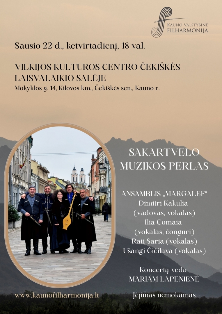 Kauno valstybinė filharmonija dovanoja ypatingą kultūrinę patirtį - ansamblio iš Sakartvelo „Margalef“ koncertą.