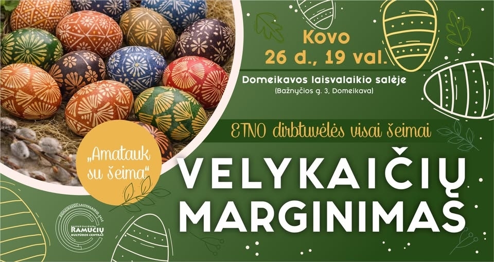 Kviečiame į jaukias etno dirbtuvėles, kurių metu marginsime Velykų kiaušinius tradiciniais būdais. Tai puiki proga susipažinti su senosiomis margučių marginimo technikomis ir kūrybiškai praleisti vakarą pavasariškoje nuotaikoje.