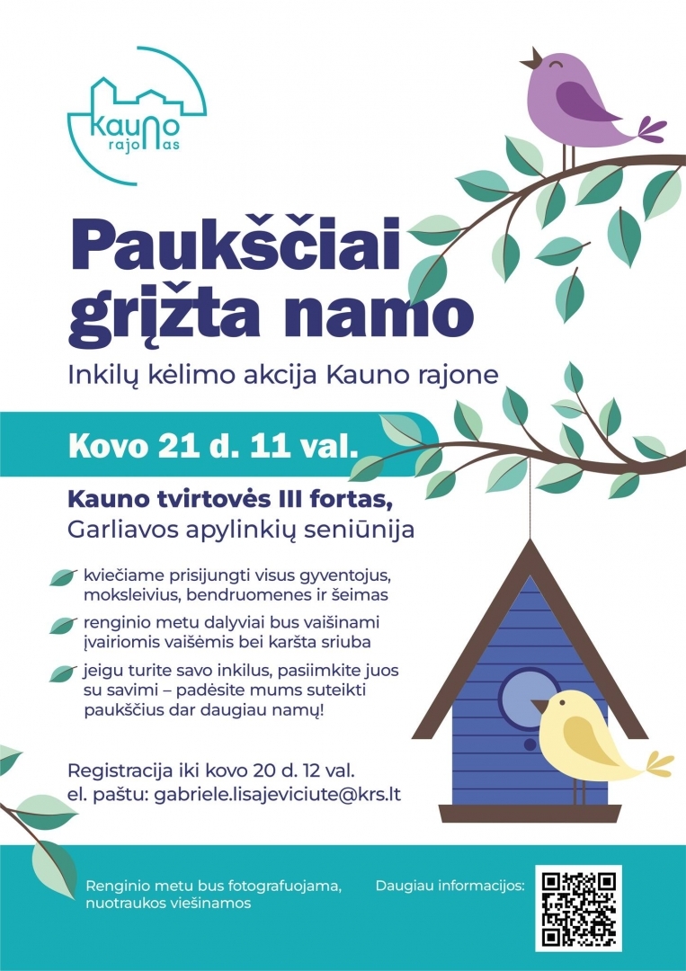 Kovo 21 d. (šeštadienį) 11 val. Garliavos apylinkių seniūnijoje, Kauno tvirtovės III forte, savivaldybės administracija su komanda kels inkilus paukščiams.