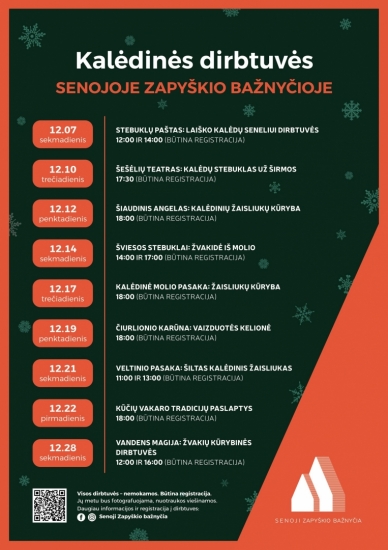 Kviečiame į kalėdines dirbtuves Senojoje Zapyškio bažnyčioje!