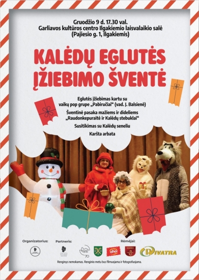 Gruodžio 9 d. 17.30 val, Garliavos kultūros centro Ilgakiemio laisvalaikio salėje (Pajiesio g. 1, Ilgakiemis) vyks iškilminga Kalėdų eglutės įžiebimo šventė. Šventės metu eglutę įžiebsime kartu su vaikų pop grupe „Pabiručiai“ (vad. J. Balsienė) ir soliste Ema Gvazdauskaite