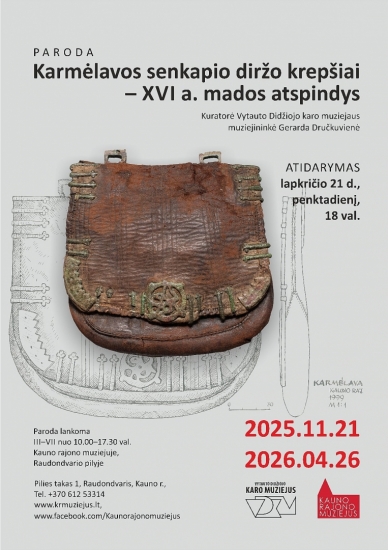 Lapkričio 21 d., penktadienį, 18 val. Raudondvario pilyje įsikūrusiame Kauno rajono muziejuje atidaroma paroda „Karmėlavos senkapio diržo krepšiai – XVI a. mados atspindys“.