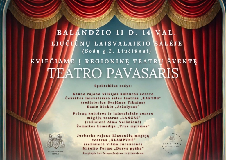 Maloniai kviečiame į regioninę teatrų šventę Liučiūnuose. --- //www.kaunorajonas.lt/renginys/regionine-teatru-svente-teatro-pavasaris