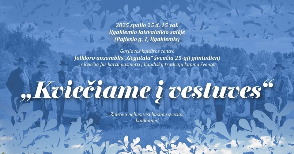 Garliavos kultūros centro folkloro ansamblis „Gegutala“ švenčia savo 25-ąjį gimtadienį ir kviečia Jus į ypatingą šventę „Kviečiame į vestuves“!