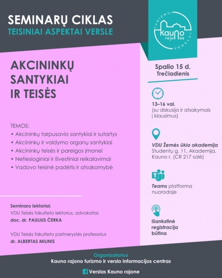 Seminarų ciklo „TEISINIAI ASPEKTAI VERSLE 2025“ penktasis seminaras